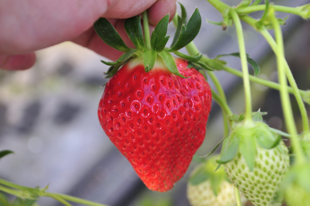 現在は、二番花の大玉いちごが多く収穫できています。